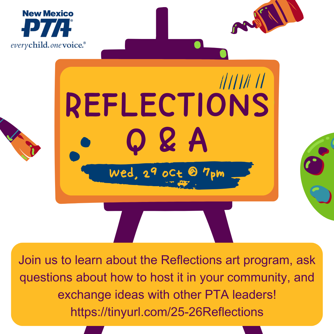 The mission of New Mexico PTA is to make every child's potential a reality by engaging and empowering families and communities to advocate for all children.