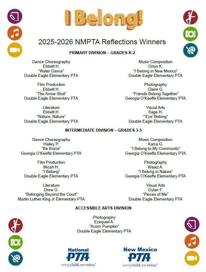 CONGRATULATIONS TO NEW MEXICO PTA’S REFLECTIONS WINNERS!